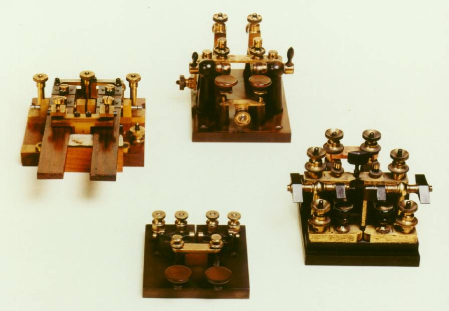 Four double keys, BPO (UK), Bunnell (USA), Muirhead (UK), and Ducretet (France). 7-3-5
